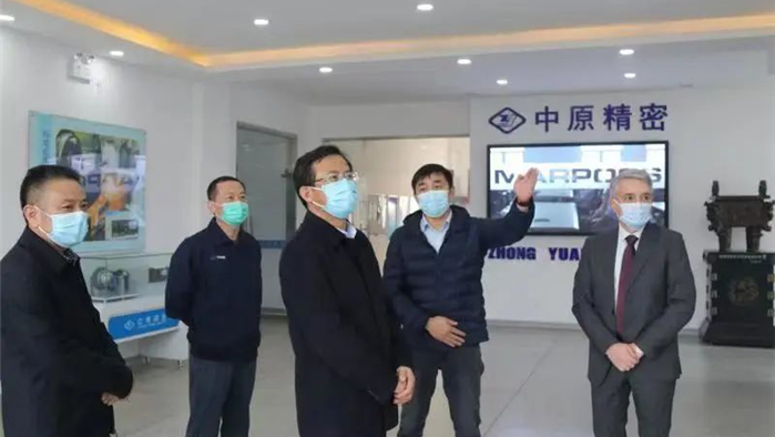 6月23日,意大利馬波斯首席執(zhí)行官M(fèi)ario Gelsi,全球銷售總裁Stefano Corradini,中國區(qū)總裁Alberto Carboni,在總經(jīng)理王鴻偉和Davi的陪同下,參觀視察三門峽中原精密有限公司廠區(qū),將進(jìn)行深層次合作。
